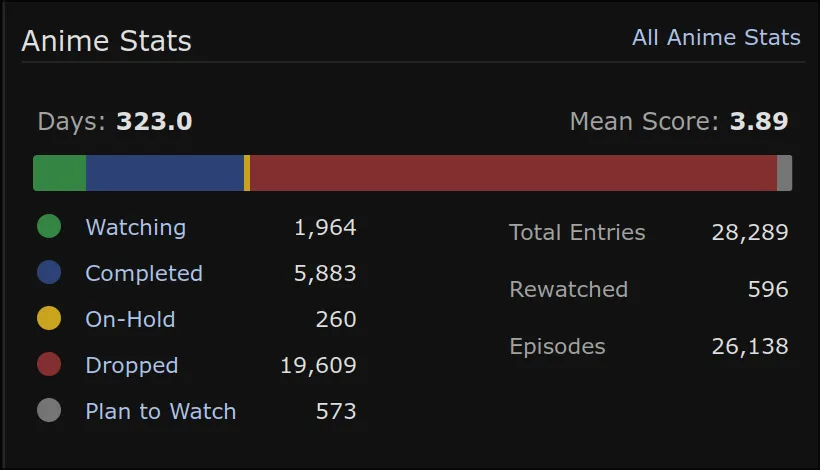 During 2022-2024ish, whenever I would watch an episode I would mark it on both MAL and AniList (and I still do this, I just don’t watch as much anime nowadays)