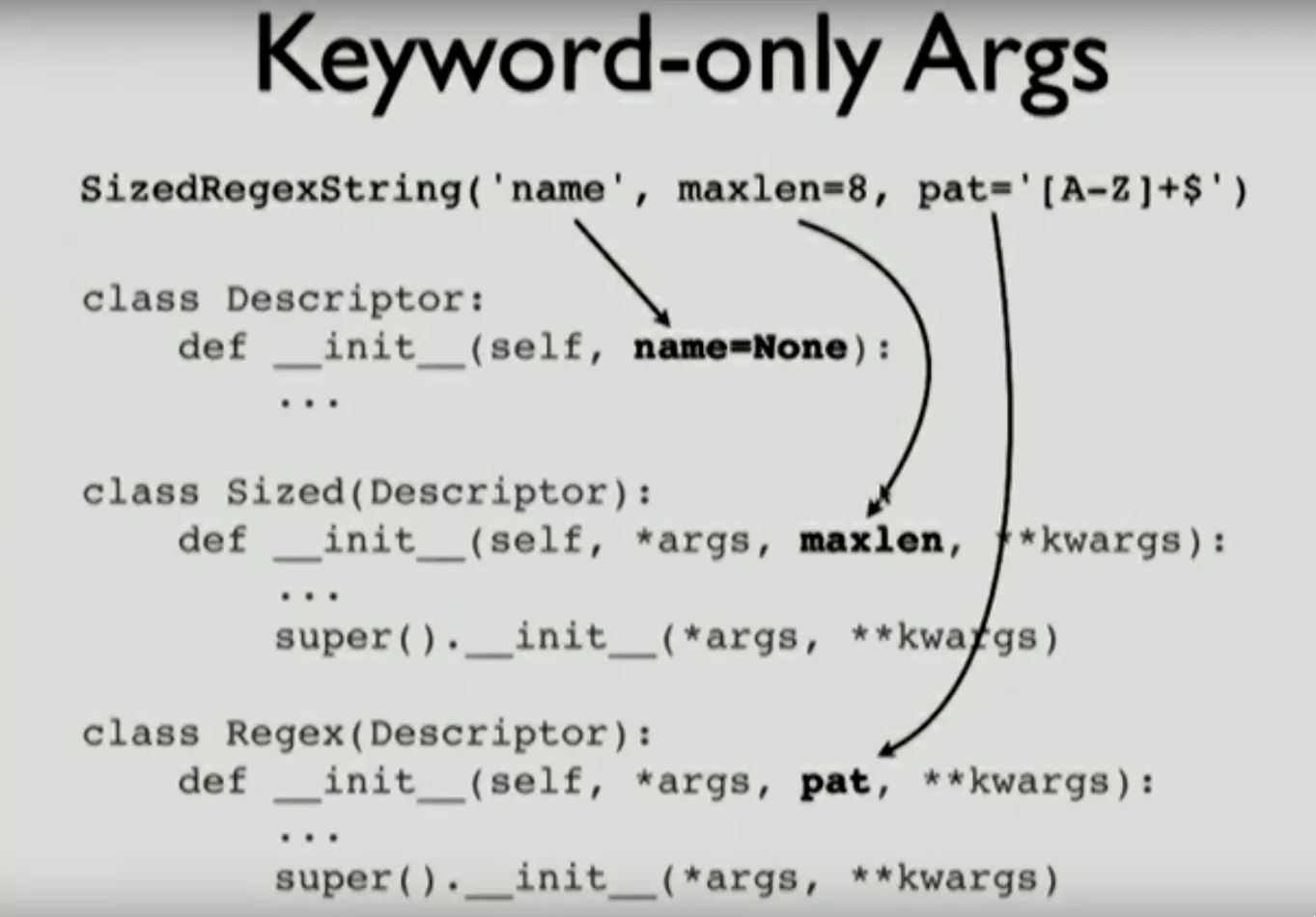 Keyword-only arguments can be used to compose some method call up through the MRO: